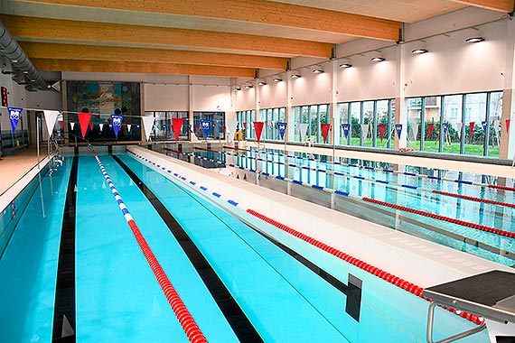 Basenom towarzyszą oczywiście przebieralnie z systemem szafek otwieranych elektronicznie na specjalną opaskę, którą będzie miał każdy korzystający z basenów.