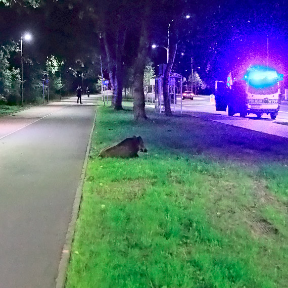 W sobotę, po godzinie 21:00 na ul. Wojska Polskiego w Świnoujściu samochód potrącił dzika. Sprawcę puszczono wolno. Przy rannym zwierzęciu zostali policjanci. Czekali czekali i czekali.