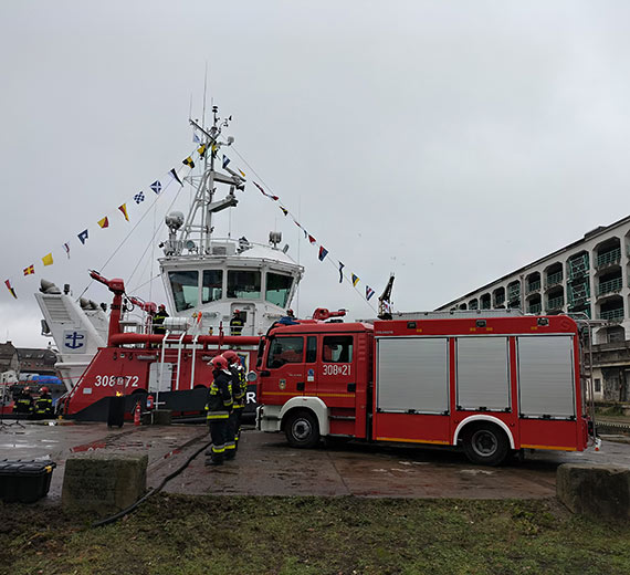 Na Mikołajki nowy statek pożarniczy. Chrzest Strażaka - 28 w porcie w Szczecinie