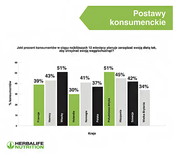 – Brakuje czegoś, co pozwoliłoby przekuć pozytywne zamiary w konkretne działania – podsumowuje Konrad Szałkiewicz, Dyrektor Generalny Herbalife Nutrition – Może to wynikać z braku narzędzi, wsparcia, edukacji. Jeśli mamy zmierzyć się z epidemią otyłości i zmianami klimatycznymi, musimy zapewnić konsumentom narzędzia i informacje, które pomogą im osiągnąć cele. Dlatego właśnie w Herbalife Nutrition nasi Niezależni Dystrybutorzy nie tylko oferują wysokiej jakości produkty, ale także wspierają klientów na każdym etapie dążenia do wyznaczonych celów i tłumaczą zależności pomiędzy prawidłowo zbilansowaną dietą a dobrym samopoczuciem – Raport „Postawy vs. intencje – rozbieżności w podejściu konsumentów do wellness”: Pobierz raport w j. ang.