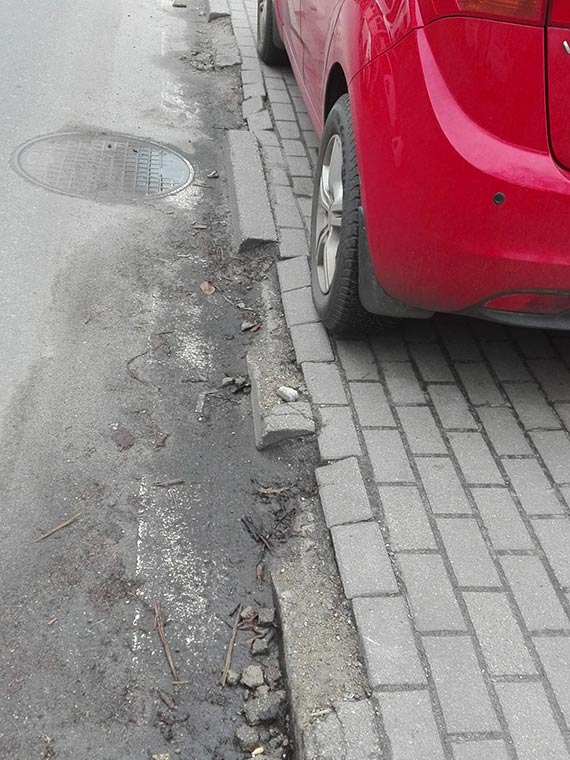 chodniki sa dla ludzi a nie wjazdu samochodamui, co za idiotyczny pomysl na parkingi wydal nasz urzad. Tak to mozna remontowac na okraglo