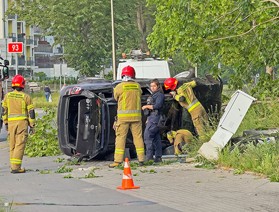 Wypadek miał miejsce w niedzielny poranek, kiedy ruch na chodnikach i ścieżkach rowerowych był znikomy, co niewątpliwie zapobiegło potencjalnym tragediom. Strażacy zabezpieczyli miejsce zdarzenia i zajęli się neutralizacją wyciekających płynów z pojazdu.