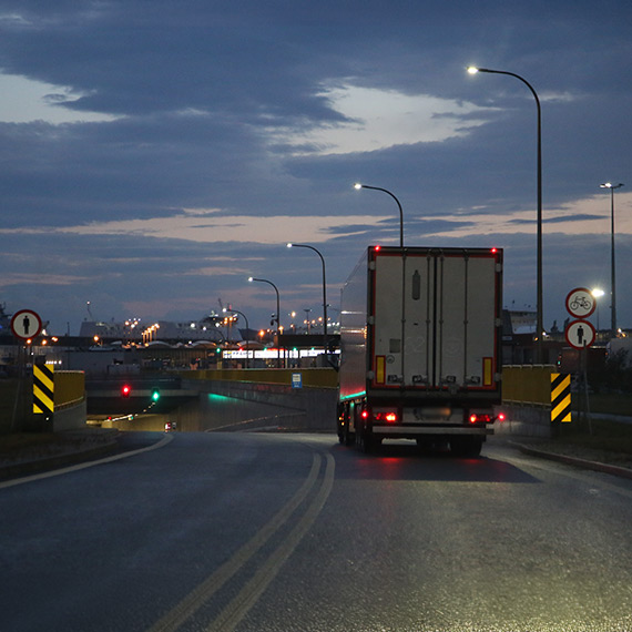 Jednym z głównych miejsc, gdzie dochodzi do pomyłek, jest duże rondo przy wjeździe do Świnoujścia. Rondo to posiada kilka wyjazdów, w tym wjazd do tunelu oraz na terminal promowy. Pomimo obecności znaków drogowych, kierowcy często mylą trasy, co skutkuje wjazdem do tunelu zamiast na terminal. Na zdjęciu widzimy ciągnik siodłowy z naczepą, który wjechał do tunelu przez pomyłkę. W tym przypadku kierowca zareagował właściwie, wyjeżdżając z tunelu po stronie UZNAM gdzie następnie zawrócił. Niestety, takie pomyłki zdarzają się często, co może świadczyć o problemie z oznakowaniem.