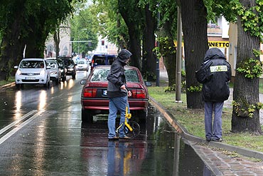 Policjanci daja przyklad chodza w taka pogode bez kamizelek. Samochody bez swiatel.I tych nikt nie kara.