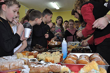 Kolejny fina³ WO¦P dopiero 09 stycznia, a w Zespole Szkó³ nr 4 dzieje siê ju¿ teraz. 16 grudnia w ca³ej szkole roznosi³ siê zapach domowych wypieków, a na ka¿dej przerwie t³umy dzieci okupowa³y bogato zastawione sto³y. czytaj
