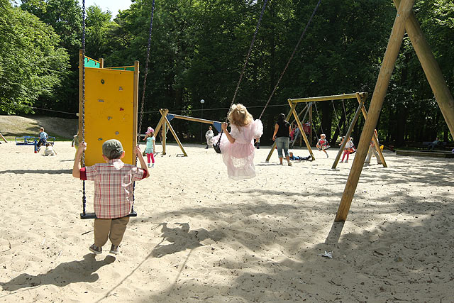 Dzieci z Przedszkola Miejskiego nr 10 uwielbiaj± bawiæ siê na placu zabaw. Jak tylko robi siê cieplej, namawiaj± Panie do wyj¶cia na ulubione hu¶tawki i drabinki. – Najlepsze s± te kolorowe, drewniane drabinki – mówi± dziewczynki z jednej z grup. – S± takie du¿e i pe³ne zakamarków, ¿e mo¿na siê po nich ganiaæ. - A ja wolê hu¶tawki, tylko ¿eby wysoko siê bujaæ. Tak tylko a¿ niebo widaæ – dodaje jeden z ch³opców.