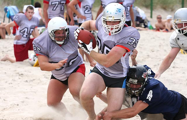 Na miêdzyzdrojskiej pla¿y rozegrane zosta³y Miêdzynarodowe Zawody w Futbolu Amerykañskim. Wyst±pi³y dru¿yny: Husaria Szczecin, Rekiny z Neubrandenburga, Dru¿yna z Vandals Wolgast, Dru¿yna z Rostocka, Koz³y z Poznania i Diab³y z Wroc³awia. - To ¶wietny sport, ale niestety rzadko mamy okazjê zobaczyæ go na ¿ywo - mówili tury¶ci, którzy przygl±dali siê meczom. Rozegrano jest w ramach Festiwalu Si³y Sprawno¶ci i Urody. Oprócz futbolu amerykañskiego by³y te¿ pokazy strongmanów, wybory miss a tak¿e turniej tañca i pokazy gimnastyczne.
