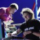 W strugach deszczu przebiega³ fina³ tegorocznej „Famy”. Sobotnie oberwanie chmury nie przeszkodzi³o jednak ani wykonawcom fina³u, ani publiczno¶ci choæ czê¶æ opu¶ci³a amfiteatr przed czasem. Prawdziwy hart ducha pokaza³ natomiast Micha³ Zab³ocki. Ten znany krakowski poeta, autor tekstów tegorocznego fina³u siedzia³ sobie jakby nigdy nic przed scen± i pod parasolem stuka³ spokojnie na starej maszynie kolejne wersy. Jak siê okaza³o jury doceni³o i jego starania choæ nagrodê dosta³ za pracê pod dachem.
