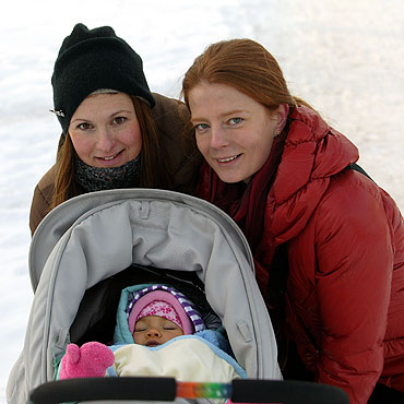 Ma³y Kubu¶ wykorzysta³ idealn± pogodê na sanki i wyci±gn±³ rodziców na spacer.