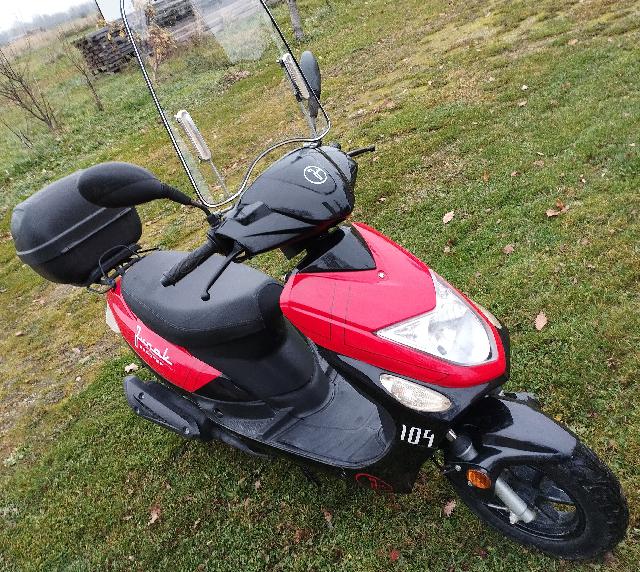 Skuter JUNAK 104 z 28.12.2018 r. Ostatnio wymieniony akumulator, regulator napiêcia, siedzenie, szyba czo³owa, filtry i olej. Odpalany na kluczyk lub od kopki. Jeden w³a¶ciciel, dwa kluczyki. Dodatkowo kufer i kask. Przegl±d wa¿ny do 02.01.2027 r, przebieg 4672 km.