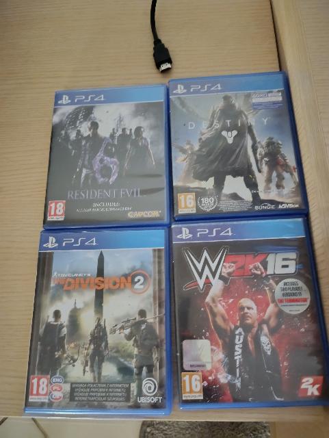 Sprzedam PS4 Pro 1TB w dobrym stanie, 2 pady, kable i 4 gry(resident evil 6, destiny, w2k16, devision2 ), cena 650 z³