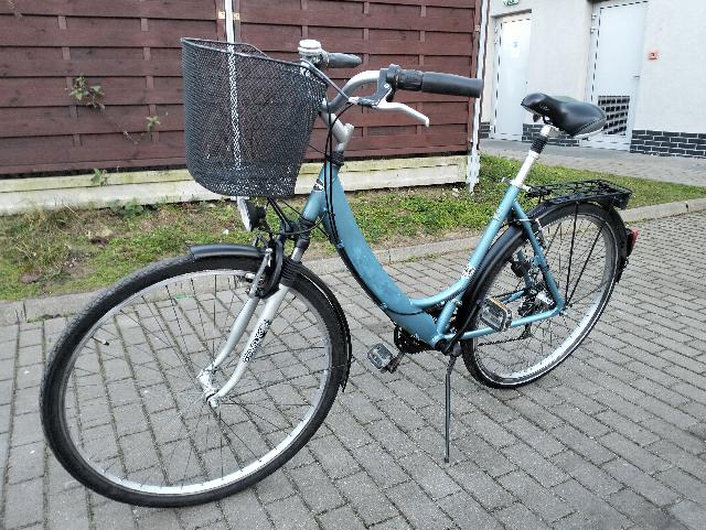 Sprzedam Rower Damka. Ko³a 28" , koszyk na zakupy, sprawne ¶wiat³a z przodu i z ty³u, amortyzowany przedni widelec oraz siode³ko, sprawne hamulce przednie i tylne oraz przerzutki 3 x 7. Cena 450