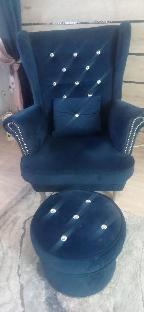 Sprzedam fotel uszak + pufa kolor granatowy z kryszta³kami stan idealny. Odbiór osobisty. Cena 500 z³.