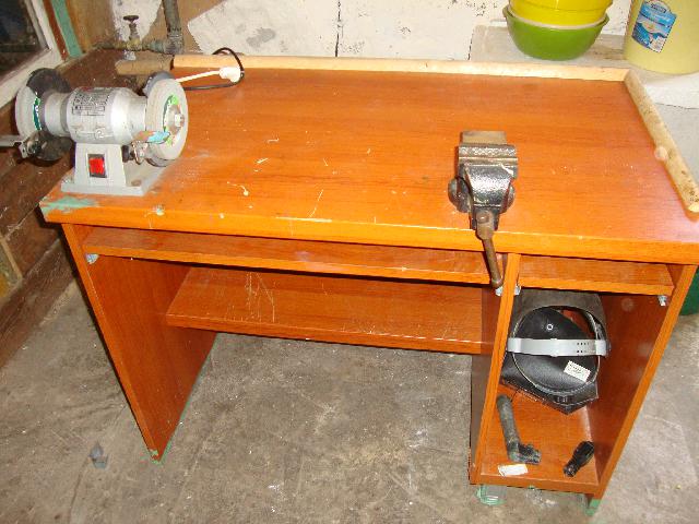 Sprzedam solidny stolik z zamontowanym imad³em i szlifierk±, 110 z³.
